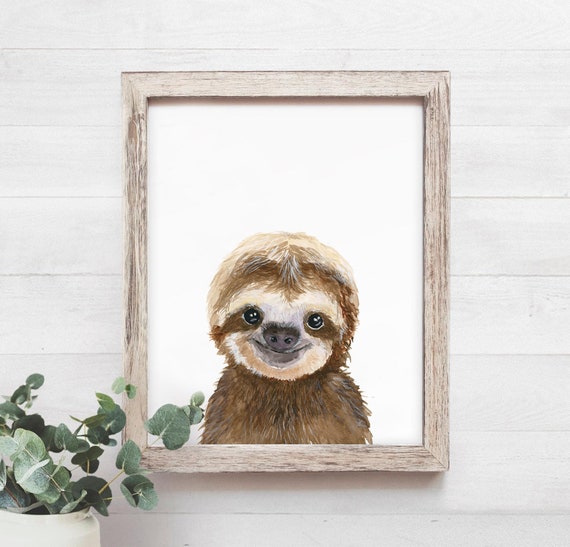 Baby Sloth Nursery Print Baby Animals Nursery Gift Nursery Etsy